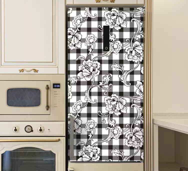 El vinilo floral patrón de cuadros florales es una hermosa pieza decorativa que combina la elegancia de un diseño floral con la modernidad de un patrón a cuadros. Este estampado en blanco y negro añade un toque de sofisticación a cualquier espacio, transformando tu refrigerador, nevera, frigorífico o heladera en un verdadero objeto de arte. Su estilo encantador y contemporáneo será el centro de atención en tu cocina, aportando frescura y alegría a tu hogar.