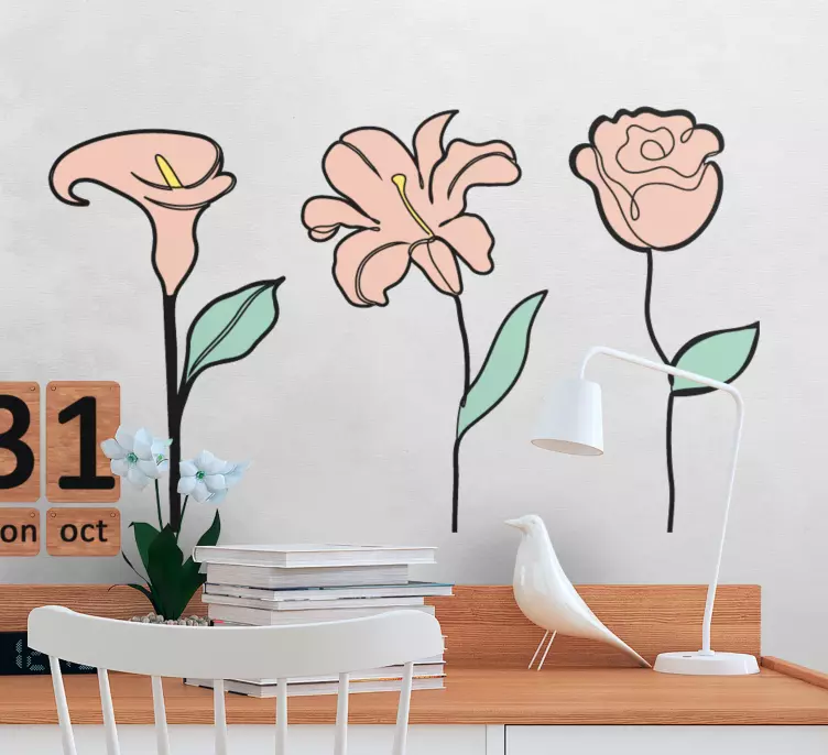 Descubre la belleza natural de nuestro Vinilo flores composición de flores elegantes, un diseño que evoca la frescura de un jardín en flor. Con un estilo elegante y botánico, este dibujo captura la esencia de la naturaleza en suaves colores pastel, convirtiéndolo en un elemento decorativo ideal para cualquier espacio. La combinación de flores crea una atmósfera serena y acogedora, perfecta para realzar la estética de tu hogar.