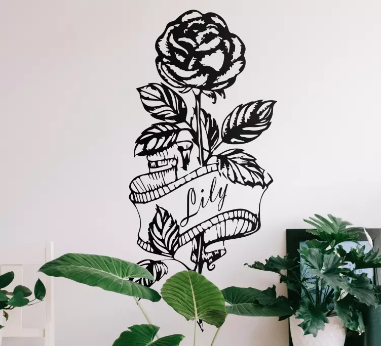 Descubre la elegancia de nuestro Vinilo flores decoración rosa negra, que presenta un hermoso diseño que combina dibujos de flores y cintas con lazos en un encantador estilo en blanco y negro. Este vinilo es la elección perfecta para quienes buscan un toque personalizado, ya que puedes incluir un nombre personalizado, convirtiendo cada pieza en un reflejo de tu estilo y amor por la naturaleza. ¡Un acento floral que iluminará cualquier espacio!