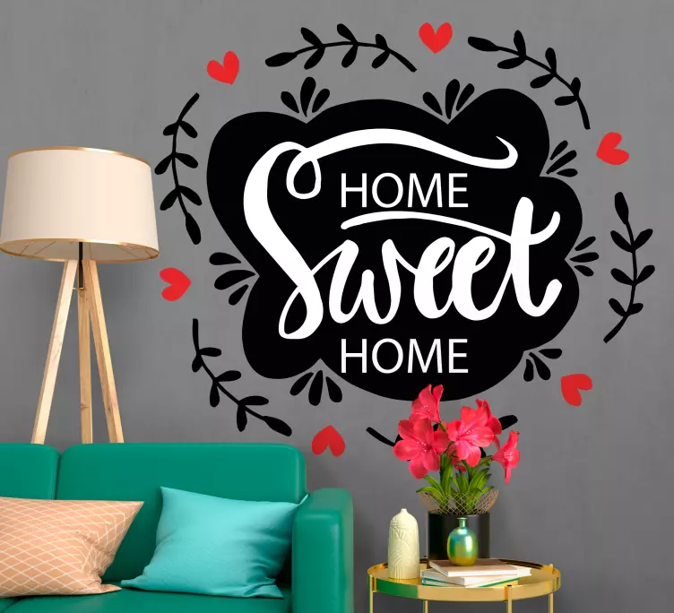 Referencia: A48557La frase 'Home Sweet Home' se representa de manera hermosa con una tipografía elegante rodeada de encantadoras enredaderas y corazones. Esta expresión transmite calidez y confort, perfecta para crear una atmósfera acogedora en cualquier espacio habitable.