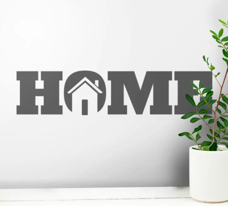 Referencia: A49083Este diseño presenta la palabra 'home' con un símbolo de techo integrado, enfatizando la comodidad y un sentido de pertenencia. Su estilo monocromático ofrece flexibilidad en la selección de colores, lo que lo hace adecuado para diversos interiores de hogar.