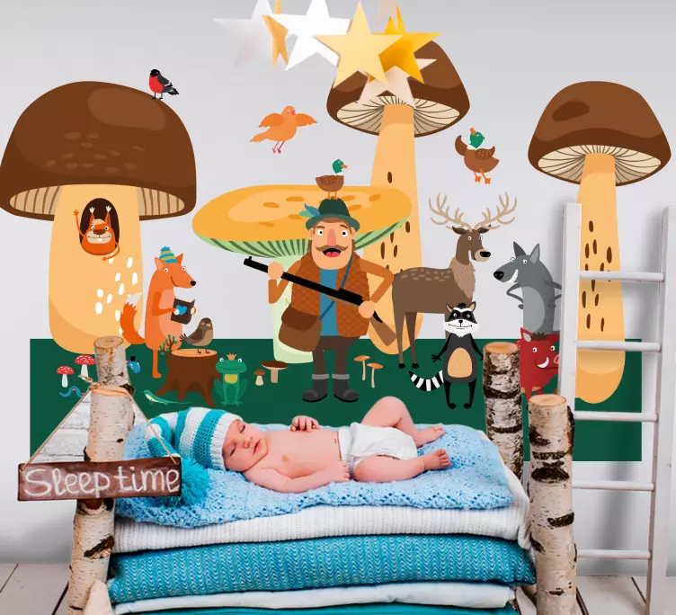 ¡Sumérgete en un mundo mágico con nuestro Vinilo infantil aventura de animales del bosque! Este diseño encantador presenta un bosque lleno de setas, animales adorables y una decoración caprichosa que transformará la habitación de tus pequeños en un lugar de ensueño. Con ilustraciones vibrantes que evocan la naturaleza y la fauna silvestre, es perfecto para la hora de acostarse, haciendo que cada noche sea una nueva aventura en un entorno acogedor y lleno de imaginación.