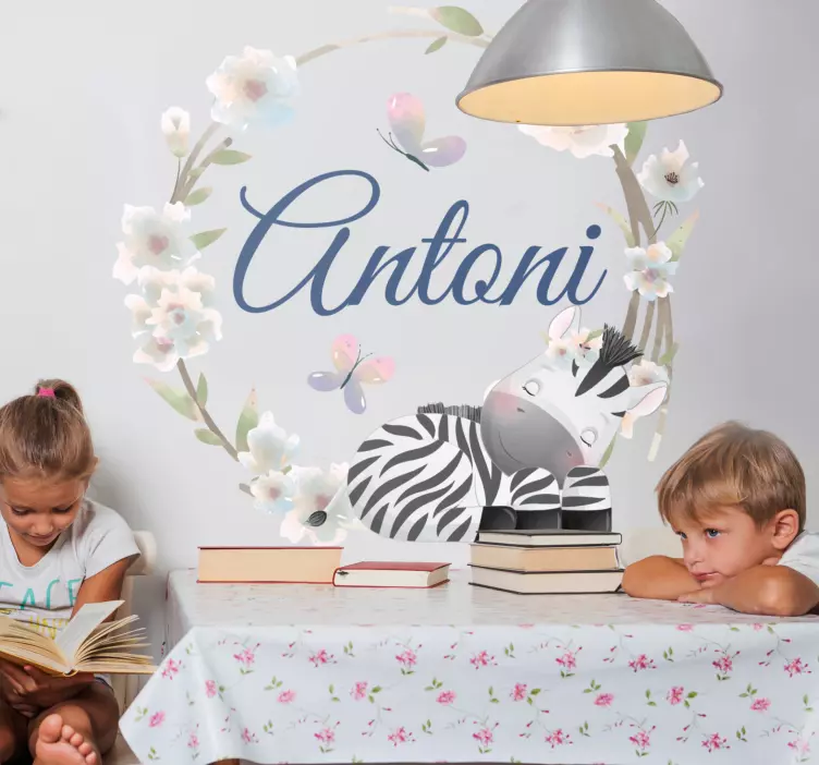 ¡Transforma el espacio de tus pequeños con nuestro vinilo infantil diseño floral de cebra! Este encantador diseño presenta una cebra juguetona rodeada de flores coloridas, creando un ambiente caprichoso y lleno de vida. Personaliza el vinilo con el nombre de tu niño en una elegante caligrafía, añadiendo un toque único y especial a la habitación. Ideal para estimular la imaginación de los niños, este diseño lindo y personalizable es perfecto para cualquier rincón del hogar.