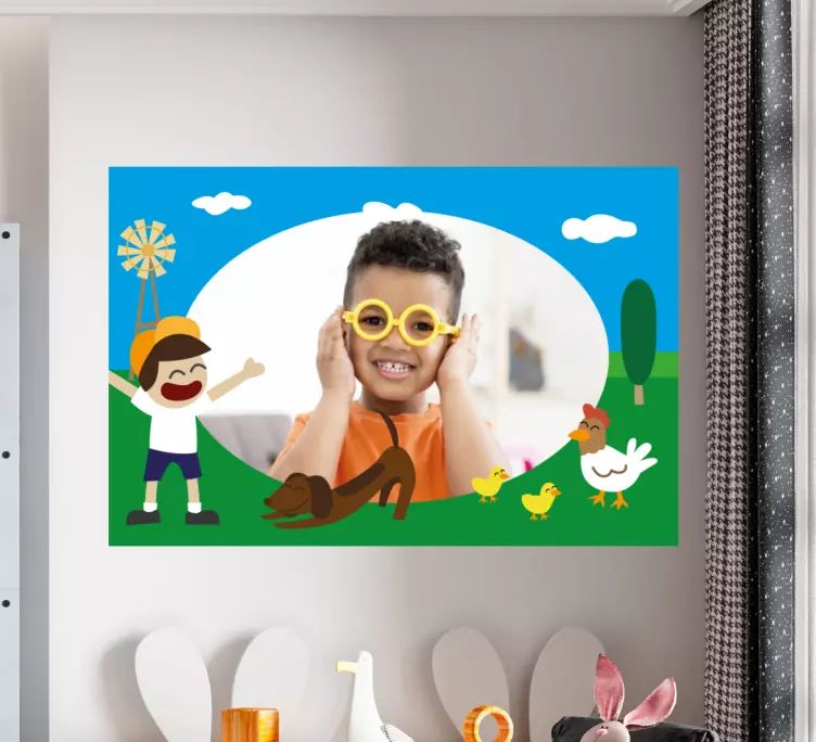 Transforma el espacio de tu pequeño con nuestro vinilo infantil escena de granja divertida, que presenta un diseño caprichoso y vistoso. Con alegres dibujos animados de un niño disfrutando entre adorables animales de granja, este vinilo se convierte en una imagen personalizada que encantará a los más pequeños. ¡Es una forma divertida de añadir un toque especial a la habitación de tu niño!