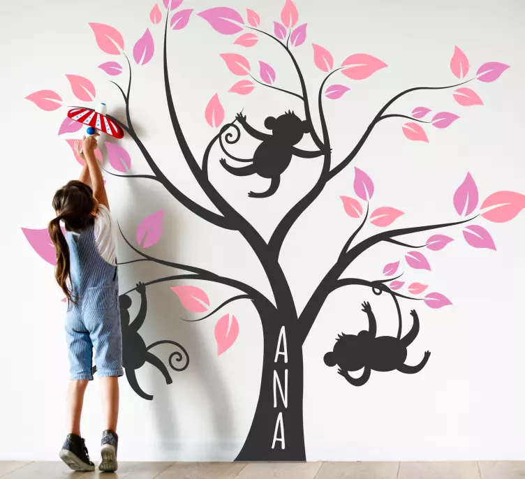 Vinilo infantil monos personalizados en árbol