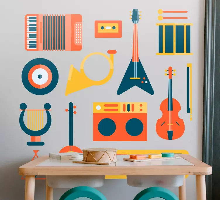 Descubre el fascinante vinilo música instrumentos musicales vibrantes, una pieza decorativa que transforma cualquier espacio en un homenaje a la música. Su diseño gráfico es vistoso y alegre, capturando la esencia de los instrumentos musicales. Este arte decorativo es perfecto para quienes desean colocar un toque musical en su hogar o estudio, haciendo que cada rincón resuene con la pasión por la música.