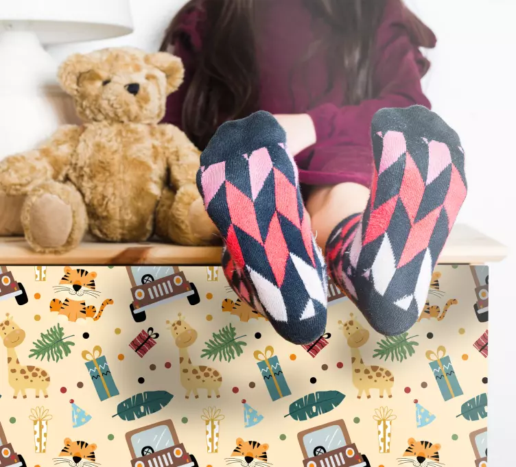Transforma cualquier espacio con nuestro Vinilo naturaleza elementos de safari divertidos que presenta un diseño vibrante y alegre. Con un patrón lleno de animales de safari como jirafas y tigres en estilo de dibujos animados, este vinilo es perfecto para decorar muebles y crear un ambiente divertido para los niños. ¡Déjate envolver por la naturaleza y la aventura en cada rincón de tu hogar!