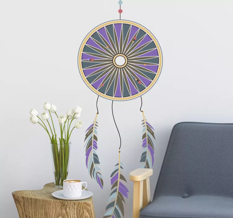 Descubre la belleza única de nuestro vinilo ornamental atrapa sueños, que presenta una ilustración cautivadora en tonos púrpura, lila y morado. Este atrapasueños está adornado con plumas y un diseño geométrico que evoca un estilo bohemio y vistoso. Sin duda, es una pieza que transformará cualquier espacio en un lugar mágico y lleno de energía positiva.