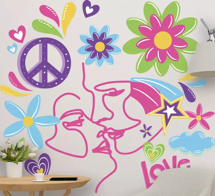 Descubre la magia de nuestro Vinilo ornamental corazones de flores en paz, un diseño vistoso y romántico que captura la esencia del amor y la paz. Con un arte lineal y urbano, este vinilo representa un vibrante símbolo de alegría, donde flores y corazones se entrelazan en una danza juguetona que iluminará cualquier espacio.