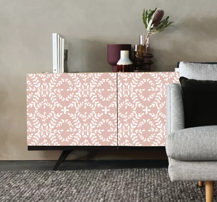 Descubre el encantador vinilo ornamental motivo de hojas elaborado, un diseño que evoca la naturaleza con sus hojas en tonos rosados y rosa. Este estampado ornamental y floral se integra de manera elegante y moderna en cualquier espacio, aportando un toque abstracto y lleno de vida. Su patrón con tonos suaves es perfecto para realzar la belleza de tus muebles, creando un ambiente acogedor y estilizado.
