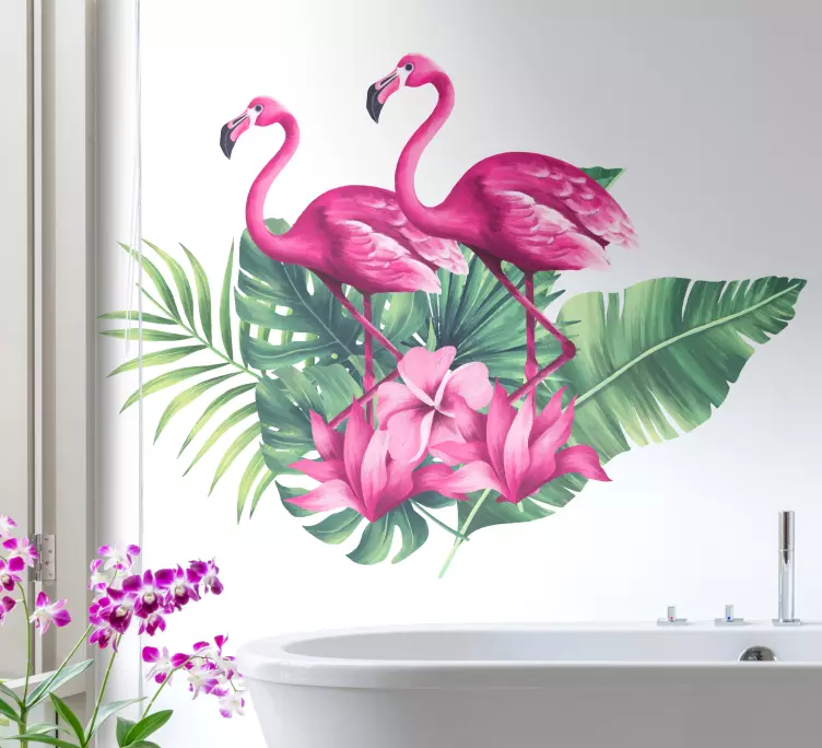 Vinilo pájaro flamencos y follaje