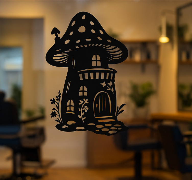 Vinilo para cristal ventana casa de hongo de cuento