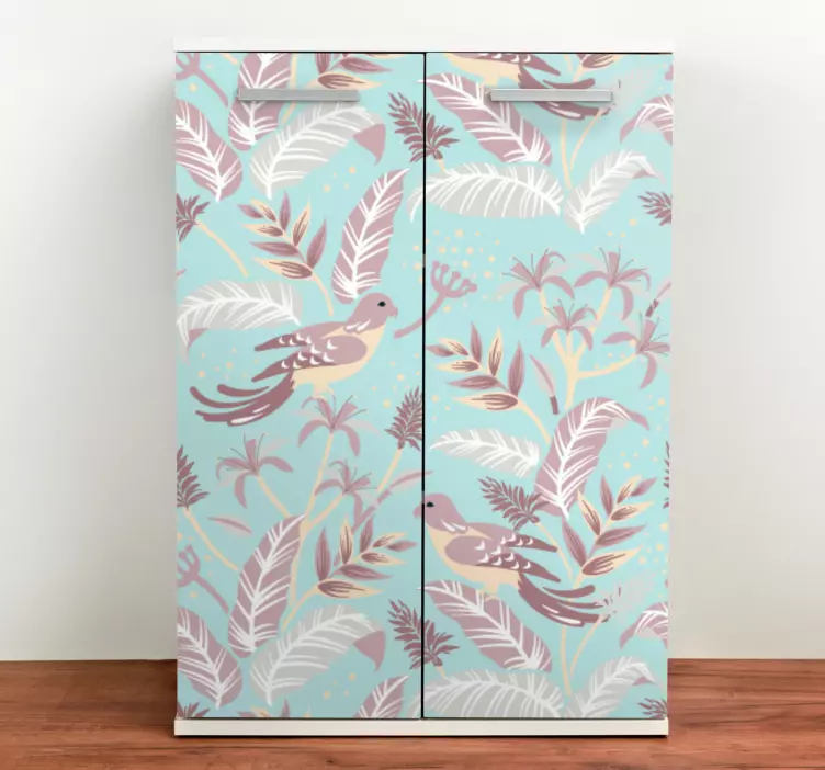 El vinilo para mueble emblema aviano botánico es una obra de arte visual que transforma cualquier espacio con su diseño vibrante y cautivador. Con una hermosa representación de aves, loros y una exuberante flora, este vinilo tropical destaca por sus colores pastel y su motivo exótico. El patrón floral y la fauna que lo acompañan crean un ambiente natural y decorativo, ideal para realzar la belleza de tus muebles y darles un toque único de alegría.