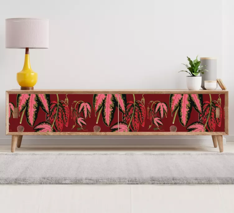 Descubre el encanto de la naturaleza con nuestro vinilo para mueble motivo de hojas lujosas. Este diseño vibrante presenta un hermoso patrón floral que combina las tonalidades de rojo, verde y rosado, creando una ilustración única y natural. Las hojas de maranta se despliegan con elegancia, convirtiendo cualquier mueble en una pieza de arte que atraerá todas las miradas. Dale un acento de muebles a tu hogar con esta estampado lleno de vida y color.