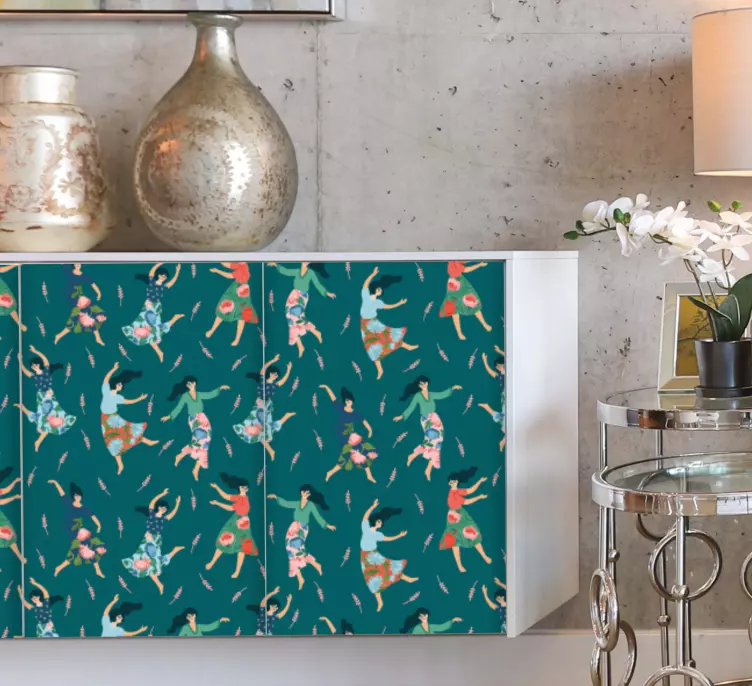 El vinilo para mueble patrón de movimiento alegre es una obra de arte que captura la esencia de la celebración y la danza. Con un diseño vistoso que presenta a una mujer bailando en un patrón dinámico y abstracto, este vinilo transforma cualquier mueble en un elemento central de alegría y movimiento. Su estampado vibrante y lleno de cifras le añade un toque único, convirtiendo un simple mueble en un espacio lleno de vida y energía.