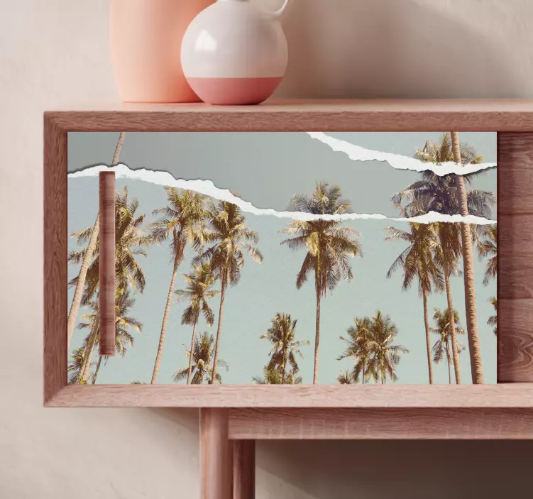 Transforma tu espacio con el Vinilo para mueble vista de palmas tropicales, un diseño vibrante que presenta palmeras y palmas en un hermoso estilo rasgado, evocando la esencia de la naturaleza tropical. Este producto es perfecto para aquellos que buscan añadir un toque de frescura y un ambiente pacífico a su casa, convirtiendo cualquier mueble en una obra de arte que respira vida.