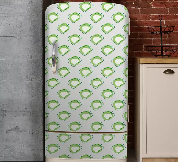 Transforma tu frigorífico en una obra de arte con nuestro vinilo para nevera diseño de frutas. Este encantador diseño presenta un patrón vibrante de manzanas y otras frutas que garabatean la superficie de tu refrigerador, creando un ambiente refrescante y alegre en tu cocina. Con un fondo verde que evoca la frescura de la naturaleza, este estampado es perfecto para quienes desean añadir un toque de vitalidad a su heladera.