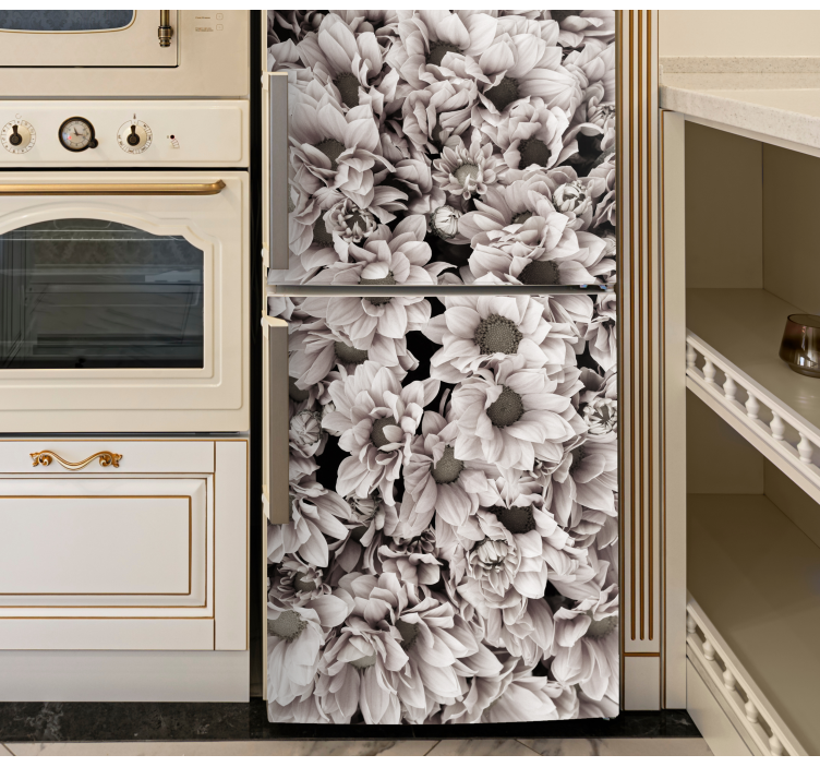 Transforma tu refrigerador en una obra de arte con nuestro vinilo para nevera estampado floral elegante. Este diseño presenta un hermoso fondo en blanco y negro, adornado con peonías y otras flores que evocan la naturaleza en su máxima expresión. El estilo realista de las flores añade un toque de sofisticación a tu heladera, haciendo que incluso el horno y la cocina se sientan más acogedores y llenos de vida. ¡Es un detalle decorativo que no querrás dejar pasar!