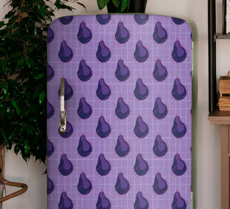 Transforma tu refrigerador con el vinilo para nevera patrón de pera púrpura, un diseño moderno y vibrante que combina tonos de púrpura, lila y morados en un patrón de frutas divertidas. Este estampado de pera con garabatos aporta un aire fresco y original a tu nevera, convirtiéndola en el punto focal de tu cocina y llenándola de alegría y color.