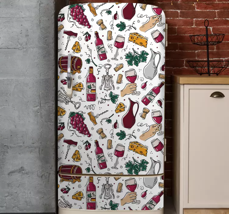 Vinilo para nevera tema de comida y vino