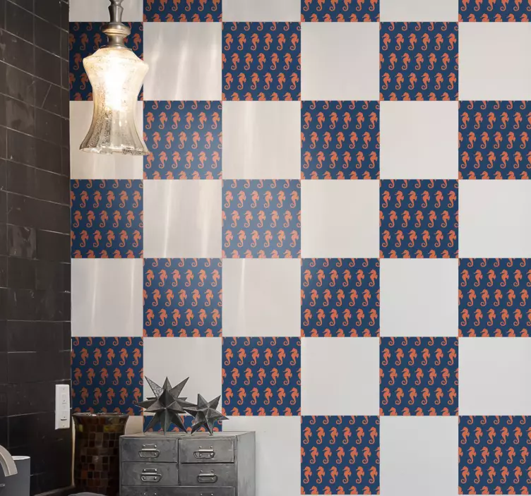 Descubre la magia del océano con nuestro vinilo pez diseño de patrón de caballito de mar, una pieza decorativa que evoca la vida marina en cada rincón de tu hogar. Este diseño encantador presenta un patrón de caballitos de mar que se entrelazan con azulejos de colores vibrantes, creando un estampado vistoso y lleno de energía. Ideal para quienes buscan un tema del océano que transforme cualquier espacio en un ambiente submarino lleno de frescura.