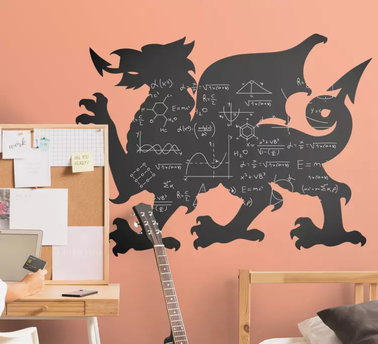 El vinilo pizarra silueta de dragón galés presenta un diseño gráfico impresionante que combina la esencia del emblema galés con una silueta estilizada y geométrica. Este símbolo da vida a cualquier espacio, permitiendo que la creatividad fluya mientras se utilizan matemáticas visuales para realzar la decoración. Perfecto para quienes buscan un toque único y lleno de significado en su hogar o lugar de trabajo.