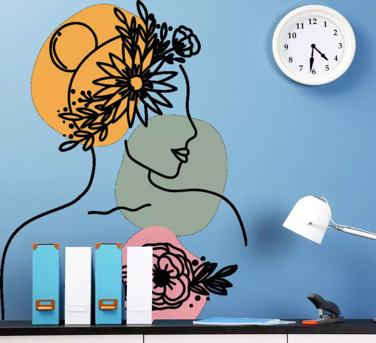 Descubre la belleza del vinilo silueta femenina elegante, una obra de arte que fusiona el rostro de una mujer con un diseño de arte lineal y abstracto. Este retrato floral minimalista resalta la feminidad a través de un delicado juego de líneas y flores, creando una atmósfera única y sofisticada en cualquier espacio.
